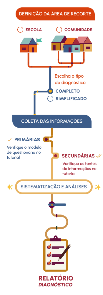 A estruturação do diagnóstico apresentada busca tornar a leitura das condições locais algo funcional, e mais diretamente relacionável com ações e medidas necessárias. Seu propósito é auxiliar na elaboração de diagnósticos objetivos para que diferentes atores possam desenvolver este estudo inicial, melhor embasando suas tomadas de decisão ao implementar sistemas de saneamento. Então, busca-se tornar mais acessível a condução de diagnósticos não se restringindo a técnicos e especialistas em saneamento.